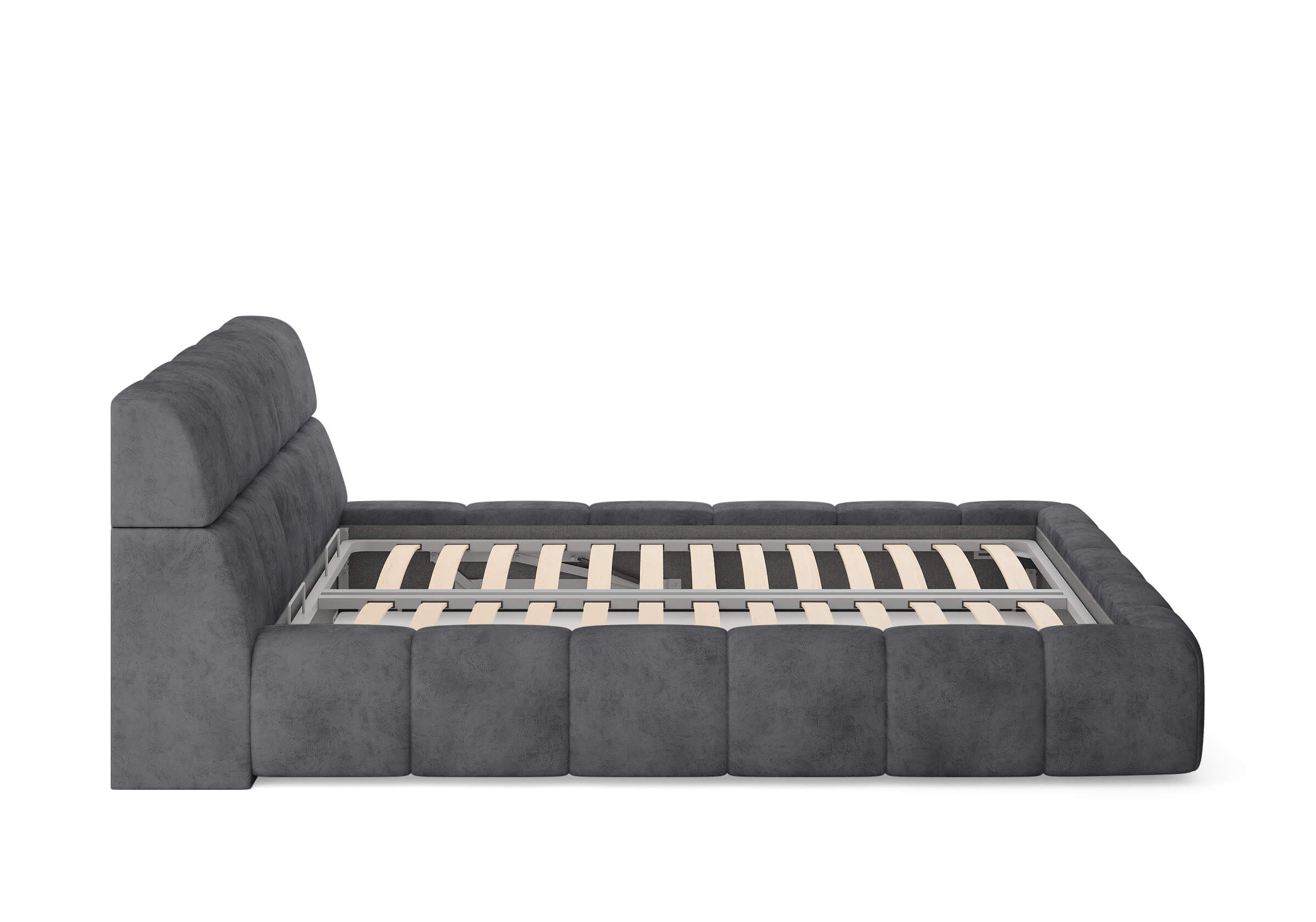 Возможна установка подъемного механизма с вместительным бельевым ящиком. Дно бельевого ящика легко сдвигается для обеспечения уборки под кроватью.